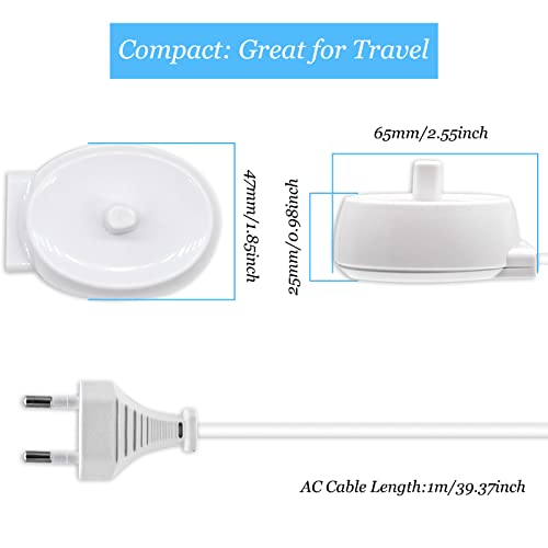 Indispensabile per i viaggi: caricabatterie per spazzolini elettrici supporta l'ingresso di tensione 110V-240V, con una spina conforme alle norme europee, ampiamente utilizzata in molti paesi europei, per cui non dovrete più preoccuparvi dell'igiene.