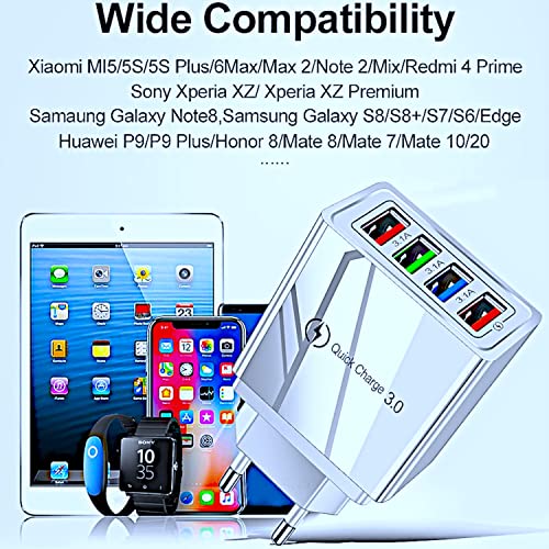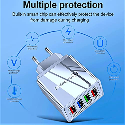 Compatibilità universale: Caricatore da parete Quick Charge 3.0 Adattatore settore 4 USB e compatibile con i dispositivi telefonici come iPhone 12/12Pro/12mini/SE 2020/11/11Pro/11 Pro Max/XS/XS Max/XR/X/8/ 7 Plus/iPad 2018/2019 ecc, Samsung Galaxy S10/S9/S8/S7/S6/A90/A80/A70S/A60/A50S/A40/A30S, Note 10+/9/8/7, Huawei P9/P10/P20/P30/P40, Xiaomi, Motorola, LG, HTC, OnePlus e altri
