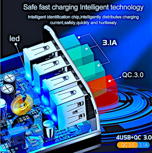 Caricatore USB 4 porte: in uscita (QC 3.0+3.1A+3.1A+3.1A+3.1A) di ricarica ad alta velocità L'alimentazione USB multiple permette di caricare 4 dispositivi contemporaneamente. Il connettore fornisce una corrente di carica massima di 2,4 A da una porta.