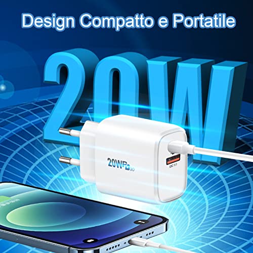 20W Caricatore USB C da Muro,Cshare PD QC 4.0 Power Delivery 3.0 Adattatore di Ricarica Compatibile con iPhone 13 Pro/12/12 Pro/12 Mini/11 Pro/XS Max/XR/X,iPad Pro/Air,Galaxy S20/S10,Google Pixel 6.