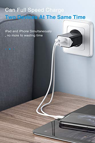 Caricatore USB da Muro con 2 Porte Caricatore da 5V/2.1A USB Caricabatterie USB Presa Adattatore USB Spina USB Universale per iPhone XS XR Samsung M20 S10 Huawei P30 P20 Lite, HTC, Tablet e Altro