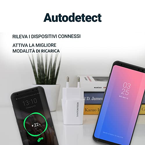 Caricatore USB da Muro SAATCHITECH ST.90321 Alimentatore USB 15W/3.1A Smartphone Caricabatterie USB Multiplo 2 Porte Multi USB Charger Compatibilità Universale