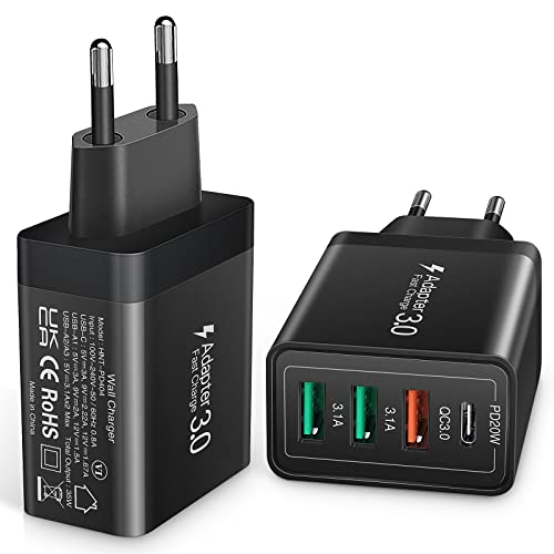 Caricatore USB 2 Pezzi, Totale 35W USB C Caricabatterie Rapido PD 3.0.QC 3.0 Compatibile con Samsung Galaxy S23, S22, S21, Note 10 9, S10, Phone12/14/13/11 Pro Max
