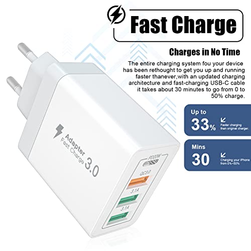 Caricatore USB C, Caricatore rapido USB 35W, prese USB multiple, caricabatterie multipli con 3 porte USB e 1 porta PD, compatibile con iPhone 12/13/14/Samsung S23/S22/S21/S20/Xiaomi/Huawei/OPPO