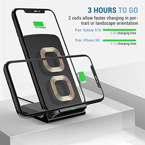 【Compatibile con 7,5 W e 10 W】 Il nostro supporto wireless è compatibile con tutti i dispositivi abilitati Qi a diverse velocità di ricarica, inclusi 15 W, 10 W, 7,5 W, 5 W. Ricarica iPhone 8 tre volte più velocemente rispetto al cavo Apple in dotazione e ricarica S10 + in meno di 2,6 ore. Offre anche un'uscita da 10 W per i telefoni HUAWEI con funzionalità wireless.