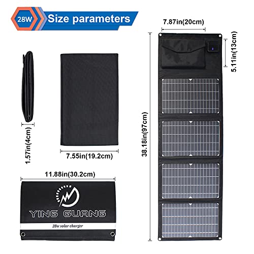 Caricatore solare 28 W pieghevole pannello solare 2 porte USB 1 porta DC portatile impermeabile QC3.0 ricarica veloce caricatore solare per campeggio, telefoni cellulari, banca di potere