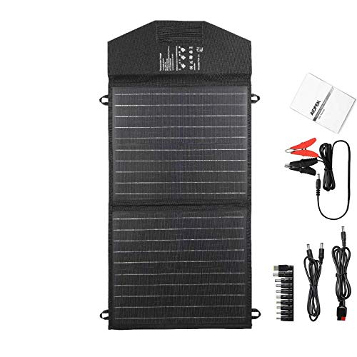 30W Caricatore Solare Portatile 2 USB Port Pannelli Solari Waterproof Flessibile per attività all'Aperto - per Laptop iPhone Fotocamera Tablet Power Bank Generatore Portatile (nero, 350x285x35mm)