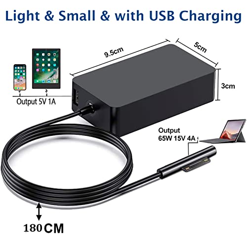 Caricatore Surface Pro, 65W 15V 4A Adattatore di Alimentatore per Microsoft Surface PRO 7/6/ 5/4/ 3/ X & Windows Tablet Surface Book 2 1706, Surface Laptop/Go con Porta USB e Cavo di Caricabatterie