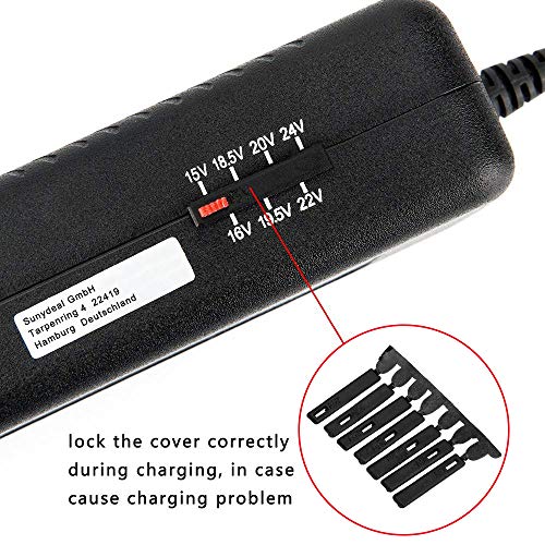Cosa ottieni: SUNYDEAL un caricabatterie universale per laptop da 90W, cavo CA / CC e 15 adattatori diversi, 12 mesi di garanzia, rimborso entro 30