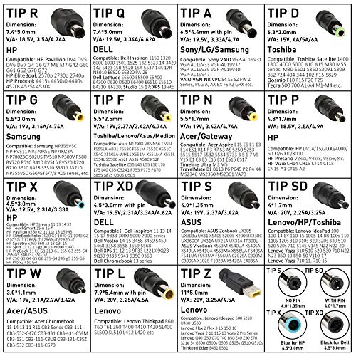 Questo caricabatterie universale per laptop compatibile con Asus R556 F555 UX32FA X200M Zenbook ux32la Zenbook UX32V X302-UA ZenBook UX32LA, Asus X410 X456UJ X541UV X541U UX301LA UX301L Transformer Book Flip TP300LJ Taichi 31 31-DH51 HP ENbook Notebook Chrome 14 Series, Stream 11 13 14, x360 ENVY 4 6 Pavilion Sleekbook 14 15 TouchSmart Sleekbook M6, M7, 15-j, 17-j, ASUS Zenbook UX21E, UX31E Series;