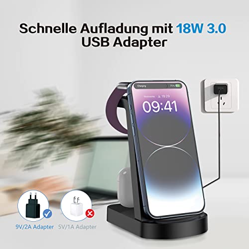 3 in 1, caricatore wireless con adattatore 18W per iPhone 14/13/12/11 Pro/Pro Max/XS/XR/X, stazione di ricarica induttiva per Apple Watch 8/7/6/5/4/3/2/SE, AirPods Pro/3/2