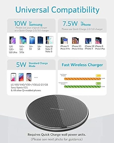 Caricatore wireless, Caricabatterie Wireless certificato Qi Ricarica Rapida Caricabatterie a Induzione per iPhone 11/12/ Pro/Pro max/XR/XS/X/8, Samsung Galaxy S10/S9/S9+, Huawei, Xiaomi ecc