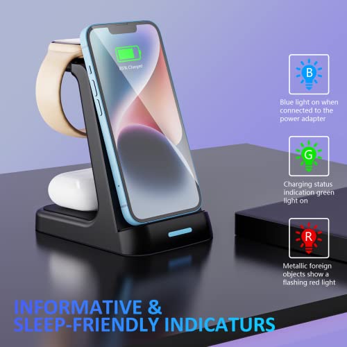 Caricatore Wireless 3 in 1, 18W Caricabatterie Wireless compatibile con iPhone 14/13/12/11 Pro Max Plus/X, Galaxy S22 S21/S20, per Apple Watch 8/7/6/Se/5/4/3/2, per Airpods Pro/2/3