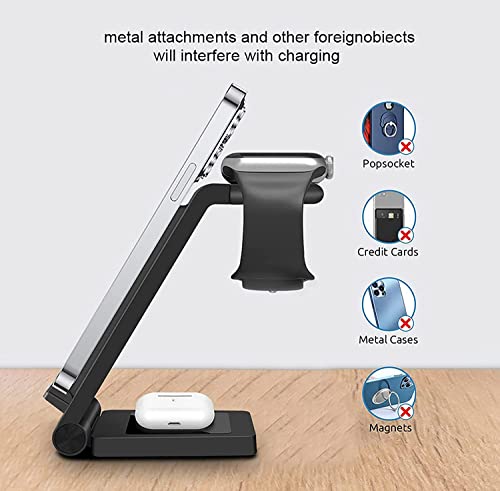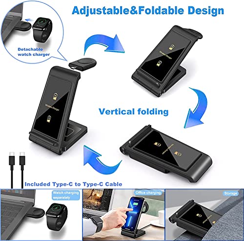 Caricatore Wireless Foldable 3in1 Senza Fili Caricabatterie Docking Station Compatibile con iPhone 14 13 12 11 15(Pro,Pro max)/X/XS/XR,iWatch 9/Ultra/8/7/6/5/4/3/2/SE,Airpod3/Pro/2,Galaxy S Note Buds
