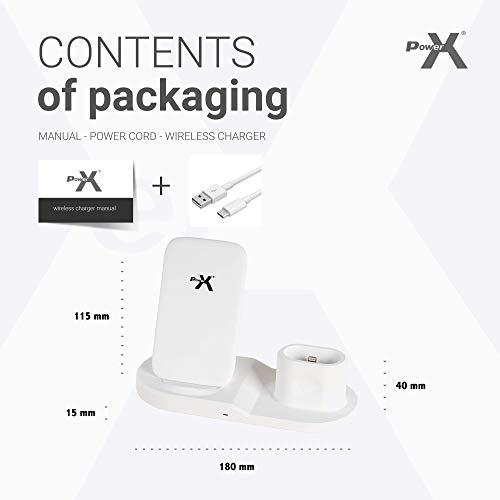 Caricatore Wireless 3 in 1 - Power X - Ricarica Veloce Wireless Porta Cellulare Supporto 3 in 1 Compatibile con tutti i dispositivi con ricarica Wireless Apple e Android