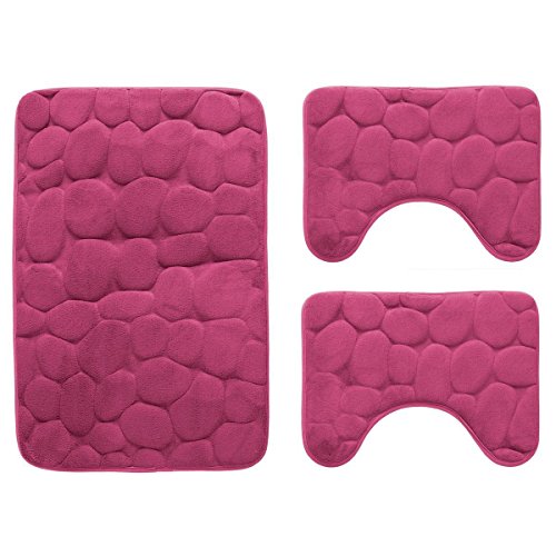 Carillo Set 3 pz Tappetini da Bagno Antiscivolo Tappeti Memory Foam P205 Fucsia