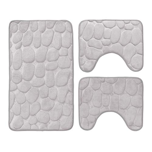 Carillo Set 3 pz Tappetini da Bagno Antiscivolo Sassolini Tappeti Memory Foam R291 Grigio Perla