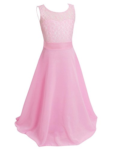 Carinacoco Ragazze Pizzo Vestito Lungo Bambina Elegante Principessa Abito Chiffon Fiore Garza Abiti da Sera Matrimonio Cerimonia