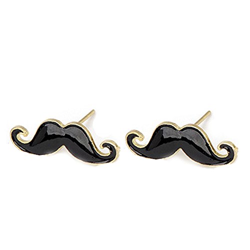 CARINGA Orecchini Baffo Baffi Nero e Oro Mustache Earrings Retrò Vintage Style