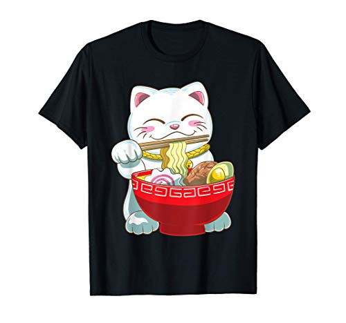 Carino Ramen Maneki Neko Kawaii Gatto Fortunato Maglietta