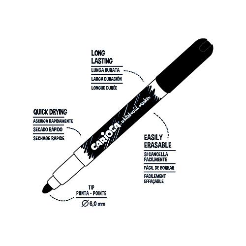 Carioca a11100012 Maxi - Confezione da 12 Pennarelli cancellabile per lavagna bianca Nero
