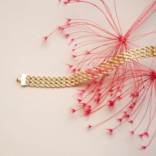 CARISSIMA Bracciale a 3 fili in oro 9 carati 18 cm/7", sottile, per donna, giallo 7 pollici