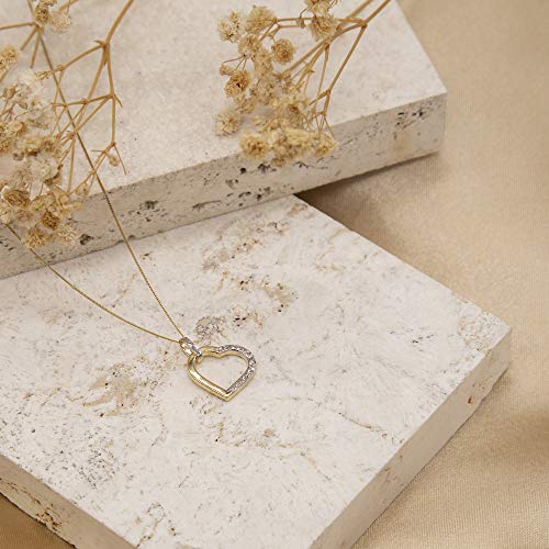Carissima Gold - Catenina con Pendente da Donna in Oro Giallo, Bianco 9K (375) con Vetro, 46 cm