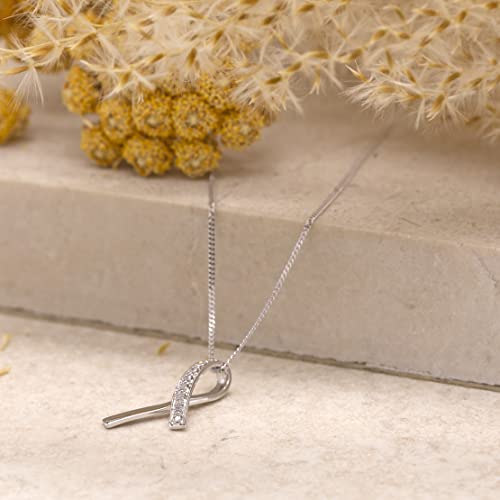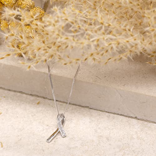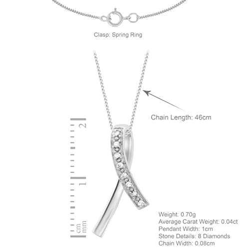 Carissima Gold - Collana Catenina con Pendente da Donna in Oro Bianco 9K (375) con Diamante 0.04 K, 46 cm