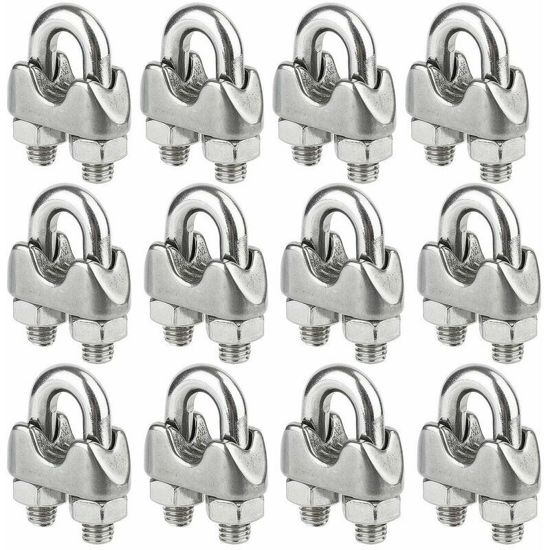 Progettato per unire due lunghezze di cavo o per formare un occhiello o un anello in un cavo. È il modo migliore per fissare cavi e funi. Realizzato in acciaio inossidabile 304 dall'aspetto lucido, privo di bave, durevole, resistente alla ruggine e alla corrosione, può essere installato in qualsiasi ambiente. > Consiste in un bullone a U, un supporto forgiato e due dadi. Entrambi gli strati di cavo sono posizionati sul cavallotto e fissati in posizione per un collegamento a tenuta stagna. Le filettature antiscivolo al centro della sella aumentano efficacemente l'attrito. Ampia applicazione in mobili da esterno o da esterno fissi, vele ombreggianti sospese, ghirlande sospese per terrazze, controsoffitti sospesi, tubi di sicurezza, colonne di ancoraggio, recinzioni, stendibiancheria, stelle filanti appese, ancore e attrezzature per il fitness, ecc. Per una connessione sicura, assicurati di utilizzare il numero corretto di clip. Si consigliano 3 clip su ciascuna estremità in modo che le
