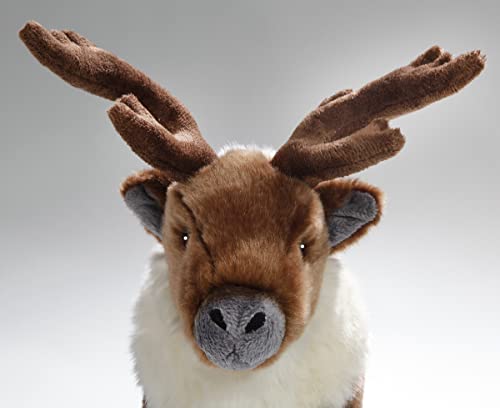 La renna sta in piedi ed è lunga circa 28cm. Misurato con le corna, l'animale di peluche è alto circa 33cm. La pelliccia ha una sensazione molto piacevole. Ideale anche come decorazione.