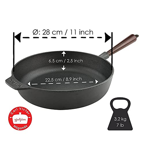 Carl Victor - Padella in Ghisa Profonda 28 cm con Manico Legno e Coperchio in Vetro, Induzione