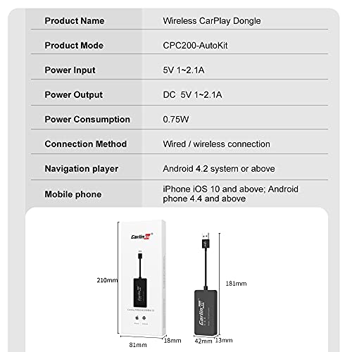 Carlinkit 2022 CPC200-Autokit,Applicabile al sistema Android aftermarket 5.0 o successivo,wireless CarPlay e wired Android Auto,(Si prega di installare"Autokit.apk"sull'autoradio prima dell'acquisto)