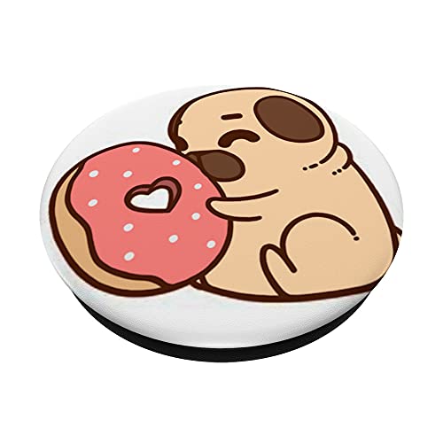 Carlino carino, cane, cucciolo con uno sfondo bianco ciambella rosa PopSockets PopGrip Intercambiabile