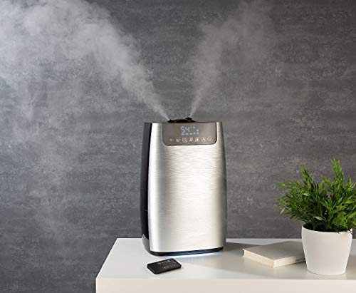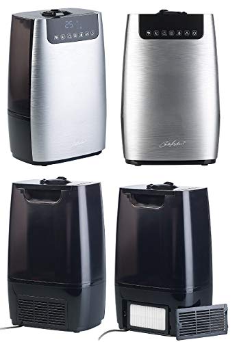 Ideale per uso domestico in ufficio e in azienda (es. nel salone del benessere) • Filtro HEPA 2in1 e carbone attivo:filtra i batteri, Spore di muffe, Allergeni, Polvere, Fumo, Odori e molto altro ancora • Due ugelli per vapore acqueo per aria umidificata in ogni angolo:può essere ruotato di 360 ° per un allineamento ideale • 6 livelli di nebulizzazione:regolabile tra 100 e 400 ml di evaporazione dell'acqua all'ora secondo necessità, ciascuno caldo o freddo