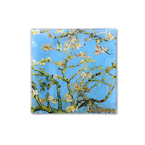 Carmani - Piatto di vetro quadrato, Stampa artistica di Vincent van Gogh 'MANDORLE BLOSSOM' 13x13cm