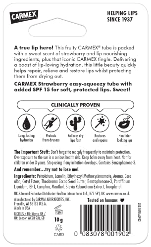 Carmex Strawberry, balsamo SPF15, tubetto da 10 g.