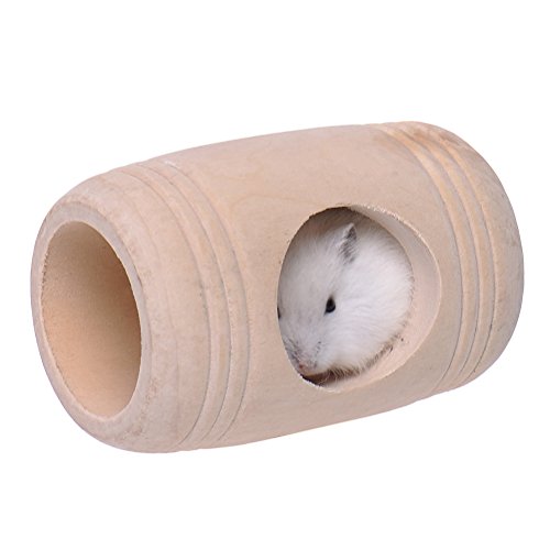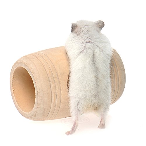 Casetta per criceti in legno naturale a forma di barile in pino naturale, pieno di fragranza legno naturale.