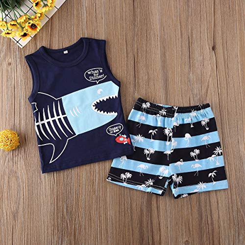 ✿ Dimensioni: 70/80/90/100, diverse 4 misure a scelta, moda per bambini, estate, spiaggia, vacanze, abbigliamento da gioco con squalo, top e pantaloncini