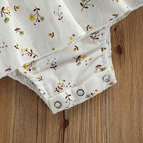 Carolilly Pagliaccetto Estivo Neonata Vestito Principessa Elegante Tutina Neonata in Pizzo Stampa Floreale Senza Manica (Bianco, 18-24 Mesi)