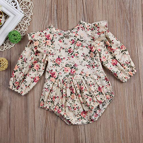 Carolilly Pagliaccetto Neonata Stampa Floreale Bimba Body a Manica Lunga Volant Tutina Neonato Cotone
