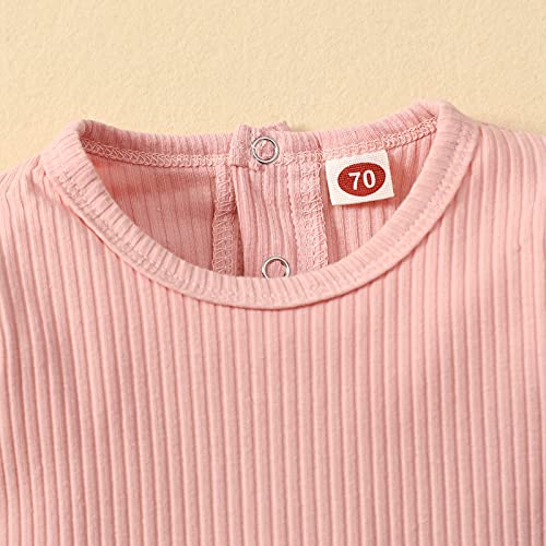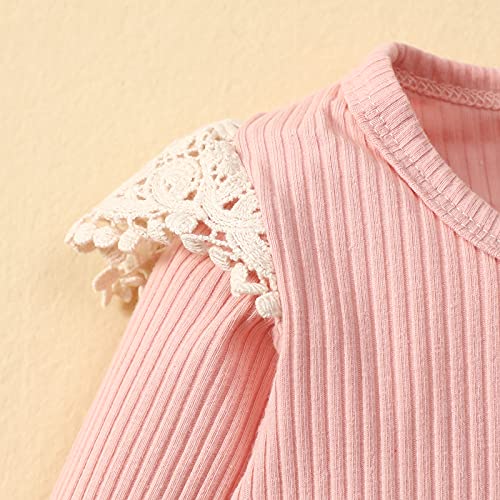Carolilly Pagliaccetto Neonato in Pizzo Elegante Tutina Neonata Body Neonato a Manica Lunga Tinta Unita Inverno Autunno Primavera (Rosa, 6-12 Mesi)