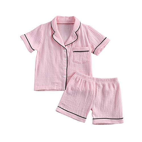 Carolilly 2 PCS Pigiama Bambina Stampa Ananas Pigiama Cotone Bambino Unisex Ragazza Camicia a Manica Corta+Pantaloncini (Rosa, 2-3 Anni)
