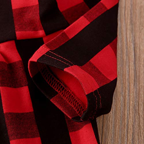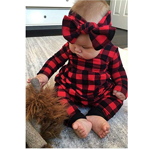 Carolilly Vestito Natale Neonata Bambina Pagliaccetto a Manica Lunga a Quadri Rosso +Fascia per Neonata