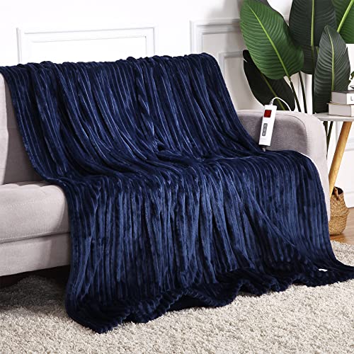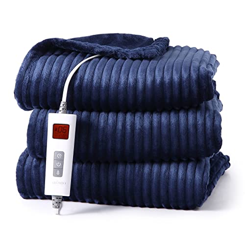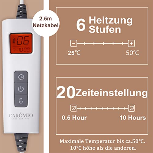 CAROMIO coperta riscaldante con spegnimento automatico, 180 x 130 cm, soffice coperta riscaldante con protezione contro il surriscaldamento, timer 10 ore, 6 livelli di calore, lavabile, blu