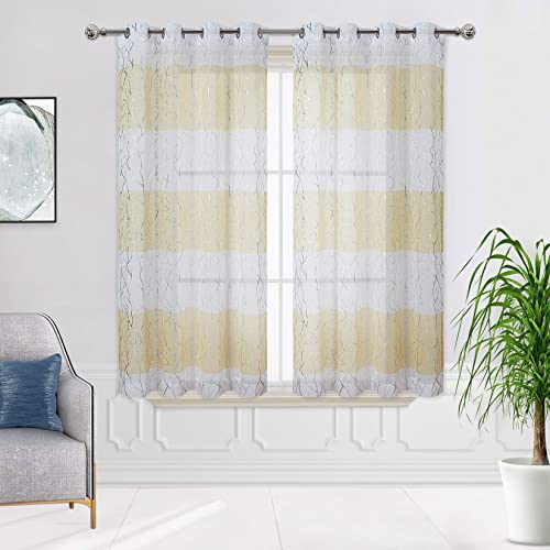 CAROMIO Tende Trasparenti, Tende A Righe Grigie E Bianche Tende Voile Trattamenti Per Finestre Per Soggiorno, Camera Da Letto, Sala Da Pranzo, 132 X 137 cm