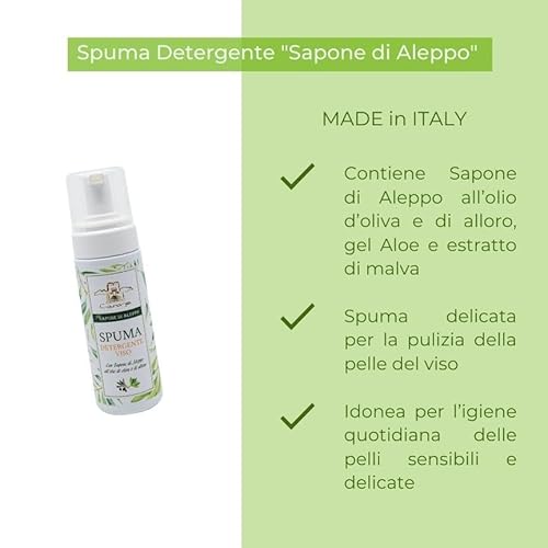 ✅La schiuma viso detergente mousse Contiene Sapone di Aleppo - gel aloe - estratto di malva. Questi 3 ingredienti sono un mix perfetto per pulire a fondo anche le pelli più delicate
