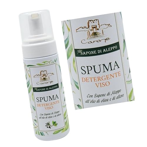 CARONE COSMETIC 150 ml Mousse Detergente Viso Con Sapone di Aleppo, Gel Aloe ed estratto di malva - Uso Quotidiano Per Skin care viso - Mousse per Pelli Sensibili - Made in Italy