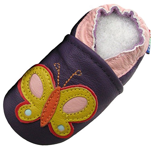 Carozoo Farfalla Viola (Colorful Butterfly Purple) Scarpe Sole Morbida Pelle Ragazze