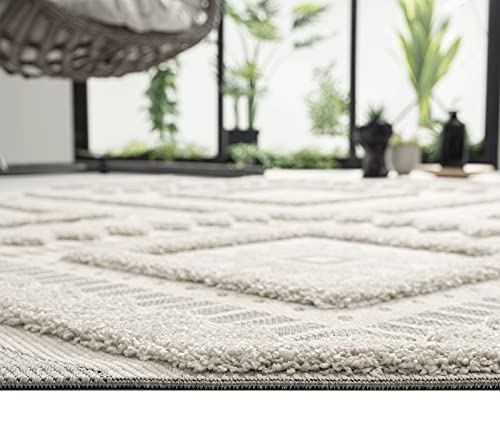 CONSEGNA: 1x Karel In & Outdoor tappeto resistente alle intemperie in polipropilene - tappeto per soggiorno o balcone crema 160 x 230 cm con ottica 3D tappeto in motivo geometrico - Oeko-Tex Standard 100.