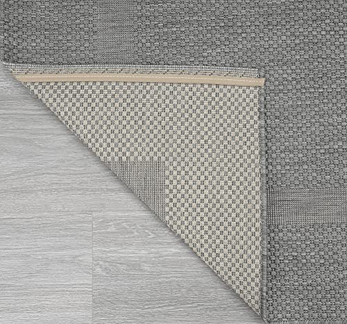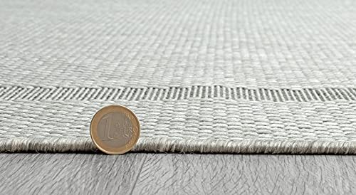The carpet Mistra - robusto tappeto per esterni, resistente alle intemperie e ai raggi UV, adatto a balcone, terrazza, giardino d'inverno o cucina e sala da pranzo, bordo grigio, 120x120 cm